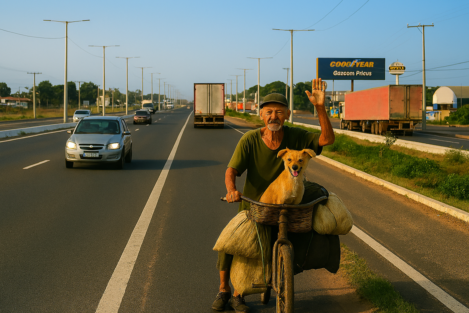 No km 18, na localidade chamada Chapadinha Sul, durante a parada habitual para beber água ou tomar um suco que aliviasse o calor dos fins de setembro, fui tomado por uma vaidade altruísta: lembrei que havia filmado o episódio e pensei em como seria fácil transformá-lo em conteúdo para redes sociais. Bastaria postar o “momento ímpar” de caridade para colher curtidas, elogios e aplausos motivacionais. Um empurrãozinho virtual que nos incentiva a buscar, quase ansiosos, mais cenas para gravar e exibir — como se a bondade só valesse se registrada em vídeo.