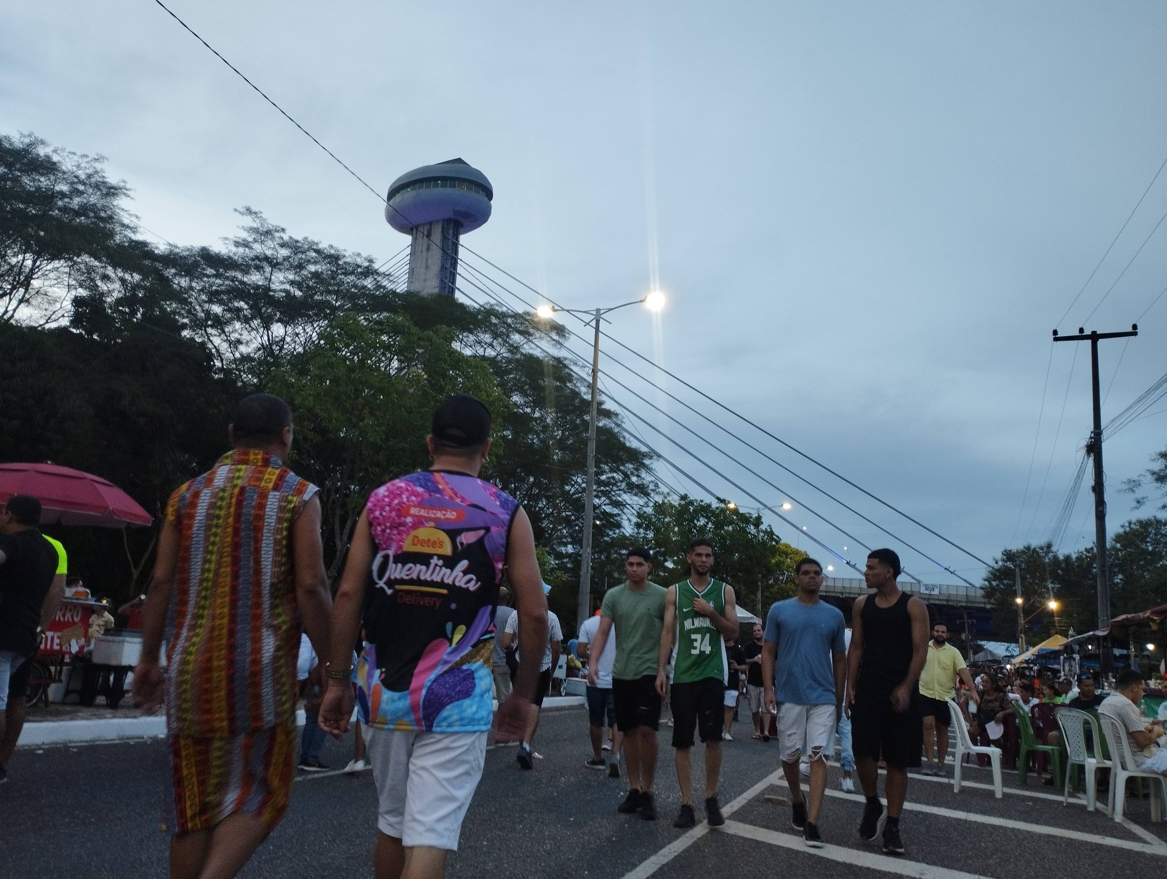 Os foliões começaram a se concentrar no corredor da folia às 17h. Crianças, adultos e idosos estão presentes no evento.