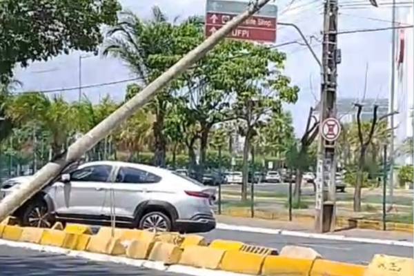 Um motorista, ainda não identificado, perdeu o controle de um Fiat Fastback e atingiu um poste de energia na Avenida Raul Lopes, em frente ao Teresina Shopping, no bairro Noivos, Zona Leste de Teresina, neste sábado (06/12), por volta de 12h.