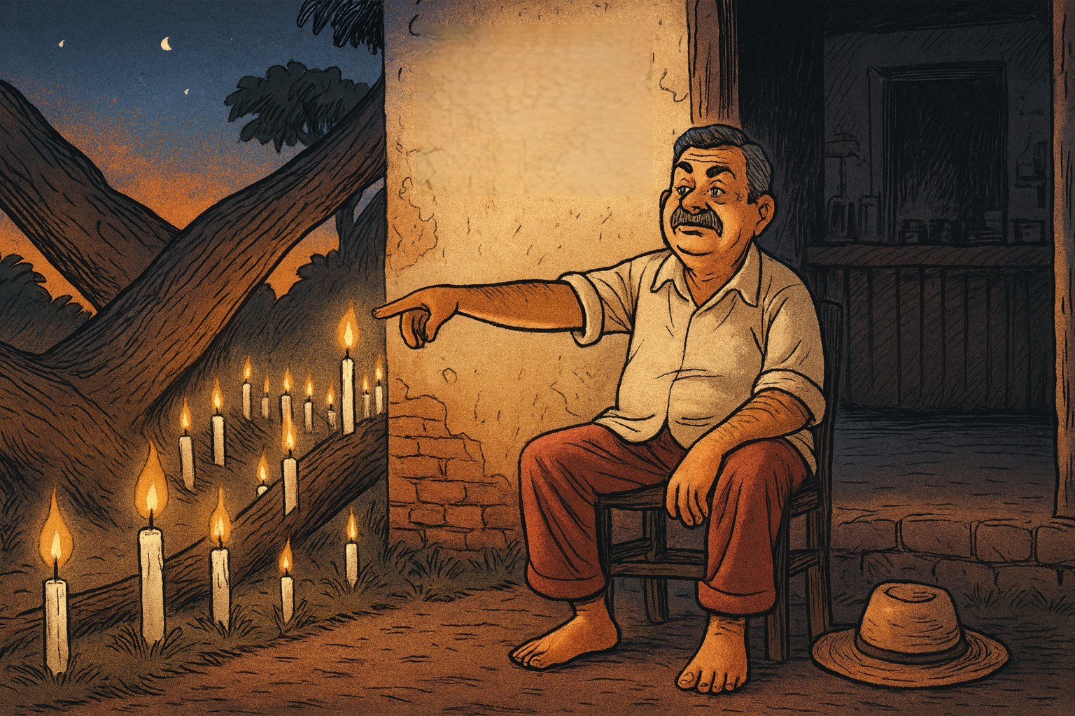 Obediente e intrépido como sempre fui, posicionava-me do outro lado da estrada, encarregado de espraiar as velas pelo imenso tronco da mangueira caída. À medida que meu pai pronunciava o nome de mais um finado, eu acendia uma a uma as velas, como se cada chama fosse um fio de luz entre este mundo e o outro. Era tempo de lamparina, de silêncio profundo, de interior. E meu pai, sentado em frente à minúscula quitanda — que naquele dia se tornava altar, desfalcada em prol das almas — comandava com voz firme: