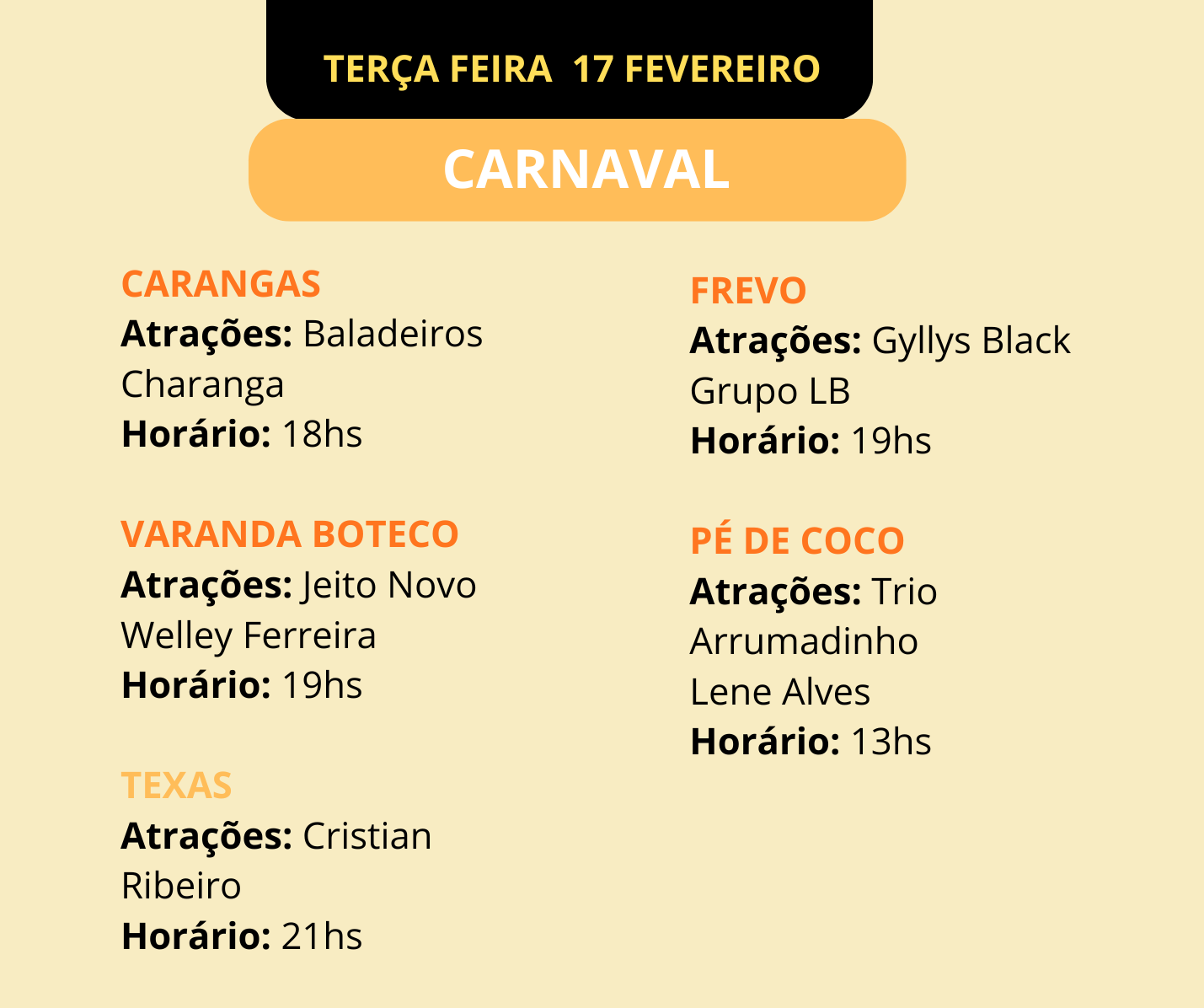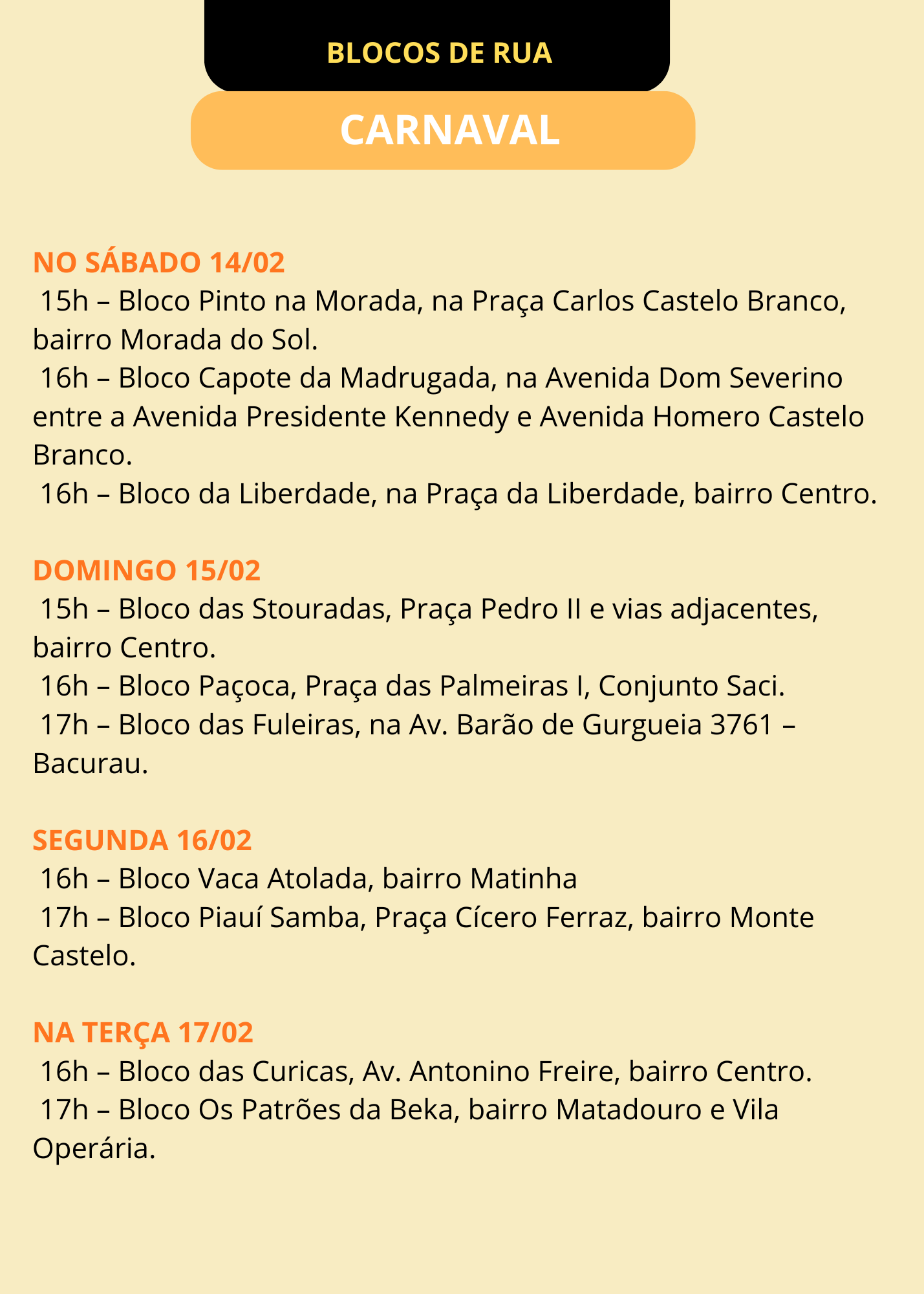 PROGRAMAÇÃO DE BARES E BLOQUINHOS