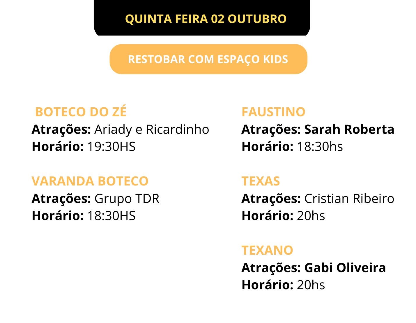 Agenda cultural de 02 a 05 de Outubro