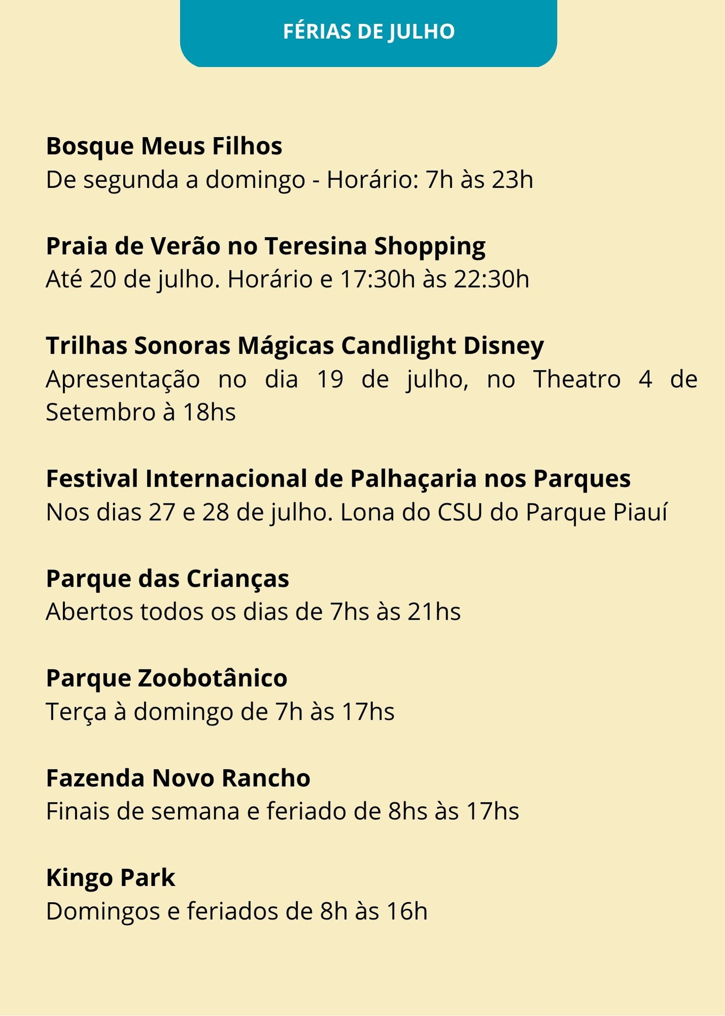 A melho programação do fim se semana e das férias das crianças.