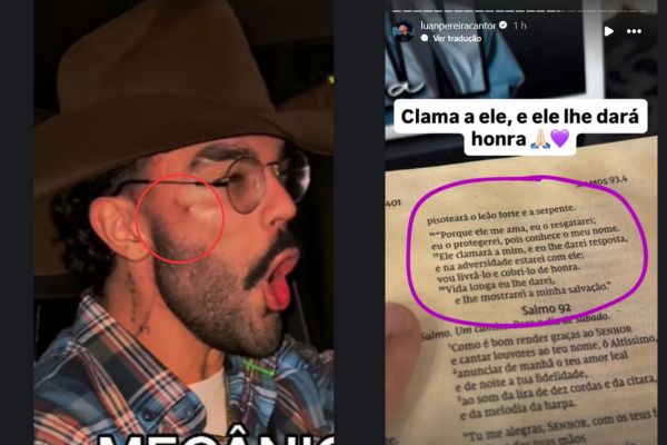 Em vídeos e relatos, Luan Pereira apareceu com um hematoma no rosto, levantando suspeitas de que teria sido atingido durante o desentendimento. Nas redes sociais, o cantor até publicou uma mensagem bíblica falando de proteção e justiça, enquanto fãs questionavam o machucado visível: “Foi o Dado, né?”, dispararam alguns.
