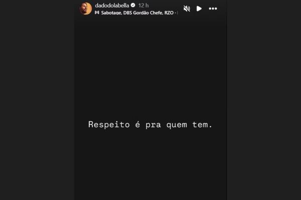 Dado Dolabella, por sua vez, se limitou a postar uma mensagem enigmática: “Respeito é pra quem tem”, sem citar nomes.